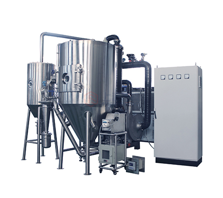 設(shè)備主要由:送料系統(tǒng)、加熱系統(tǒng)、霧化系統(tǒng)、噴霧干燥系統(tǒng)、惰性氣體循環(huán)系統(tǒng)、產(chǎn)品回收系統(tǒng)、冷凝系統(tǒng)組成。